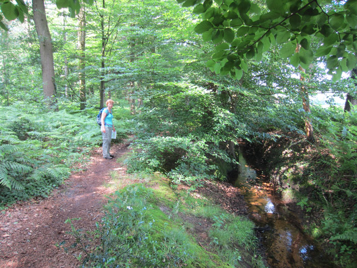 Een tijdje loopt er een klein beekje langs het pad. Ondanks de regen van de laatste tijd zit er niet veel water in de beek. |