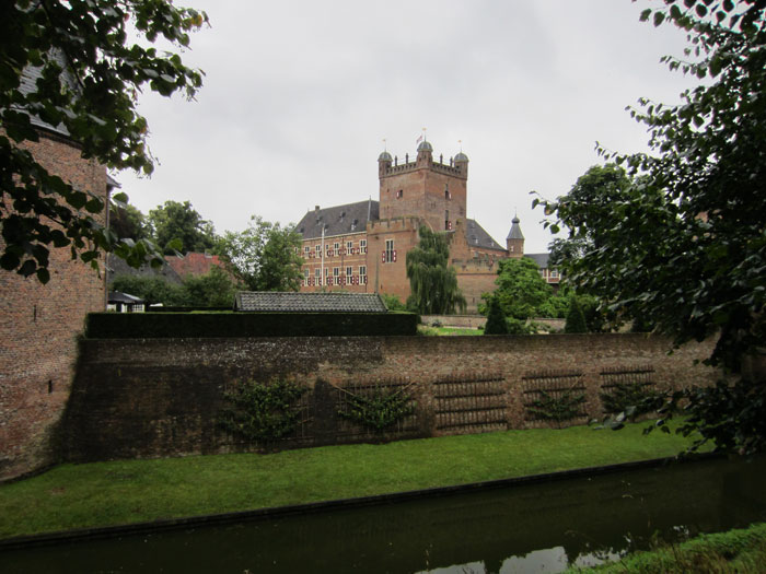 stuiten we op een slotgracht en een groot gebouw.